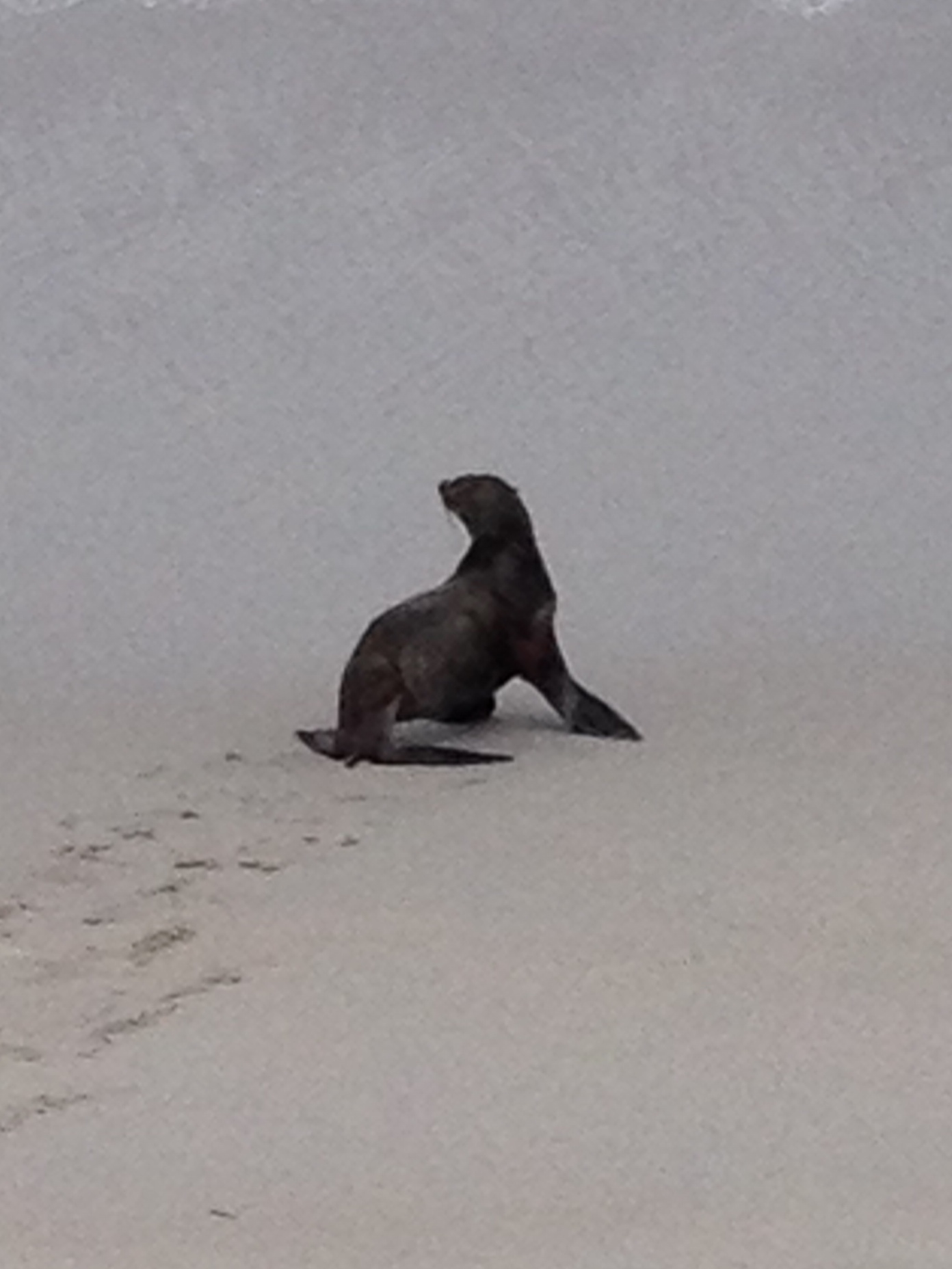 Yesterday, while my daughter and I were walking the dog on the beach, we looked behind us, and we saw a seal on the shore. We stood still for several minutes watching the seal. With Pella the dog securely on the leash, we walked closer to get a better view. As we approached slowly, the seal looked at us for a while before walking into the surf. It started swimming in the water just a few feet offshore. As we walked back home, the seal swam parallel to the shore in the same direction we walked. What a gift in this wonderful town! Seal 2