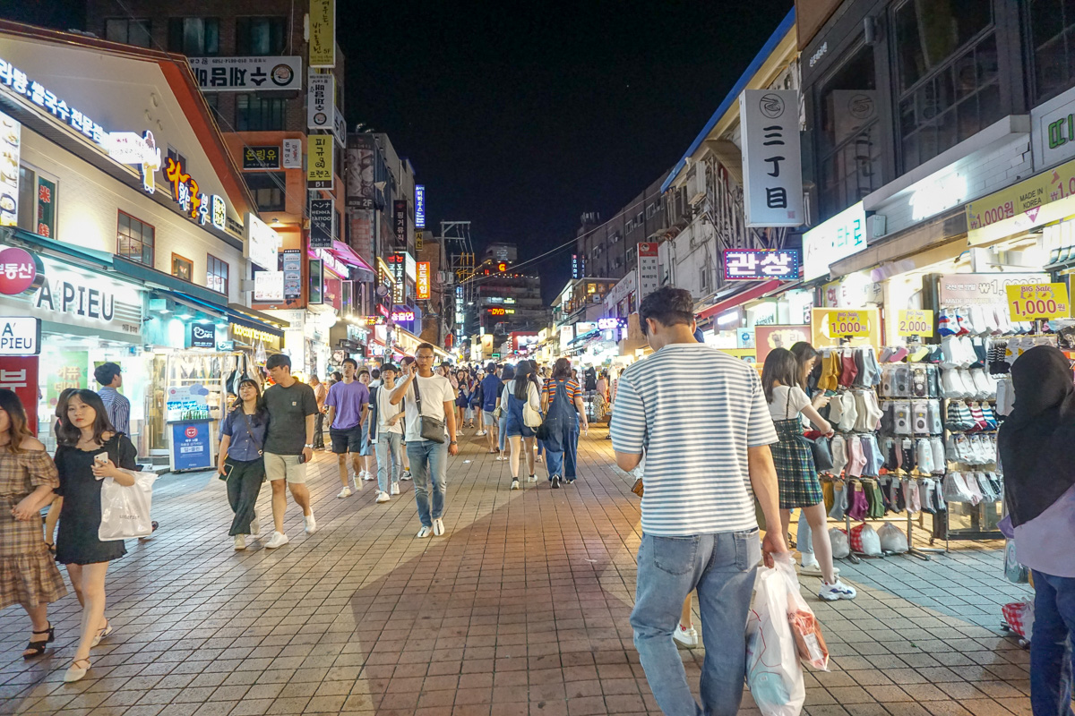 - To help avoid jet lag, stay awake until bedtime in your new place — and get outside as much as possible. Check! After dinner, we went for a walk around the Hongdae neighborhood of Seoul.